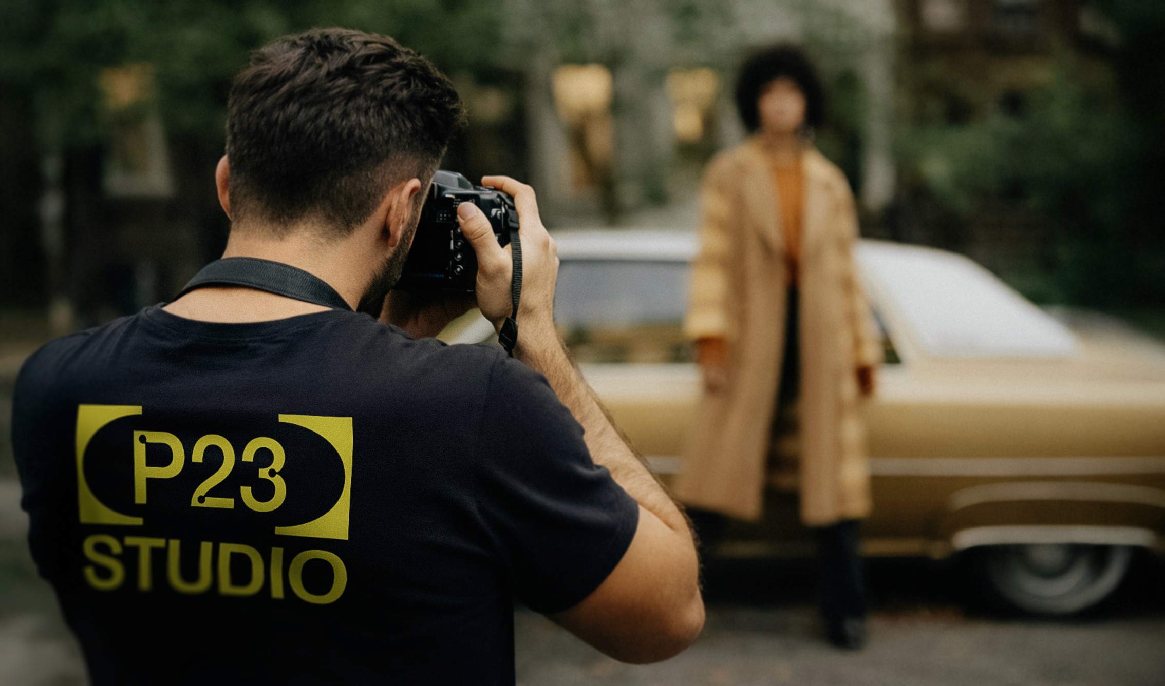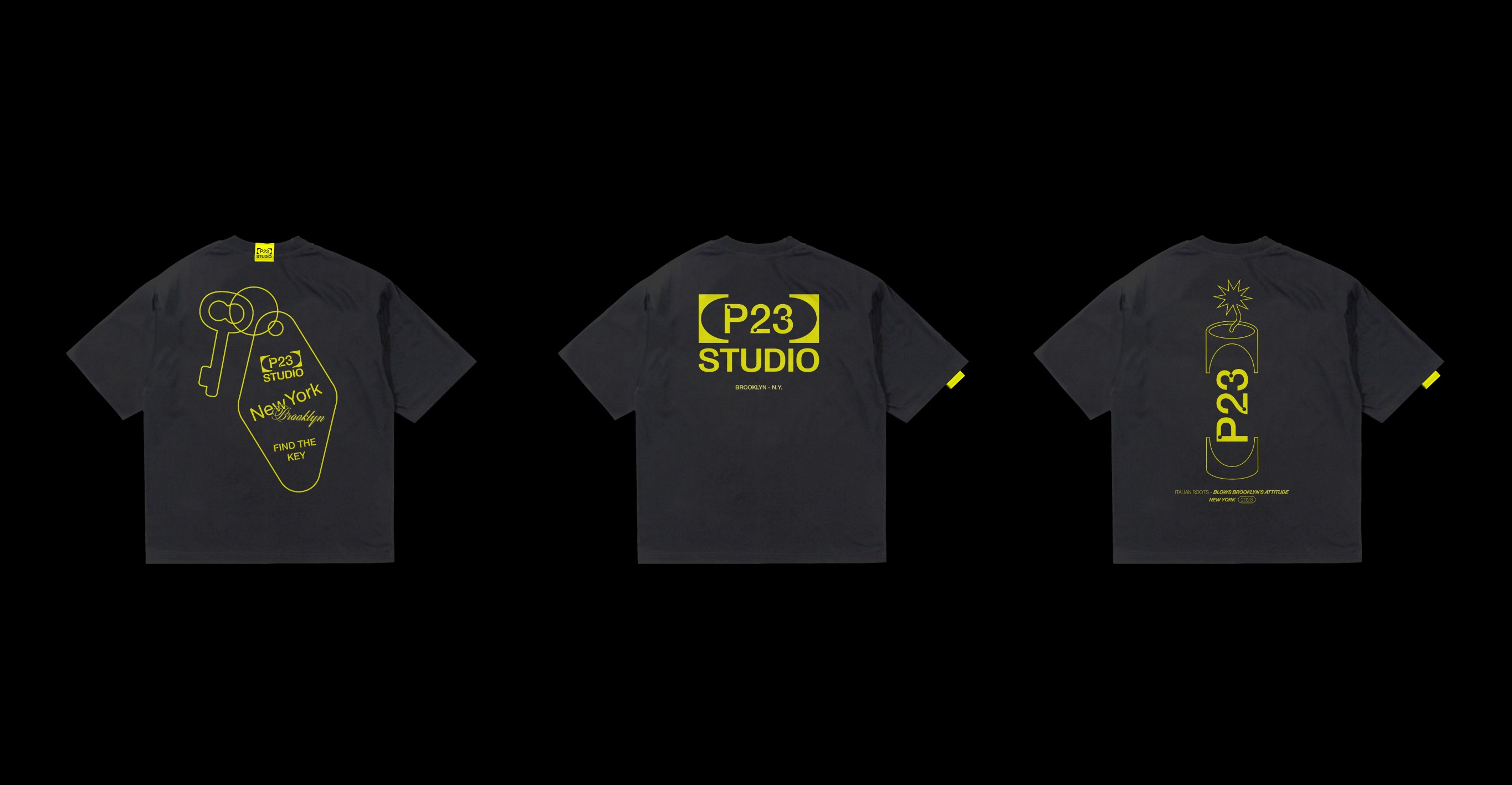 Lo studio fotografico e creativo che racchiude differenti esperienze. Il cuore del concept sta in un'idea semplice quanto efficace: racchiudere il "P23" tra due parentesi grafiche. Un gesto visivo che non è solo decorativo, evoca immediatamente l'idea di contenere, raccogliere, proteggere. Esattamente quello che fa uno studio creativo: fare da cornice al talento, al progetto, alla visione del cliente.